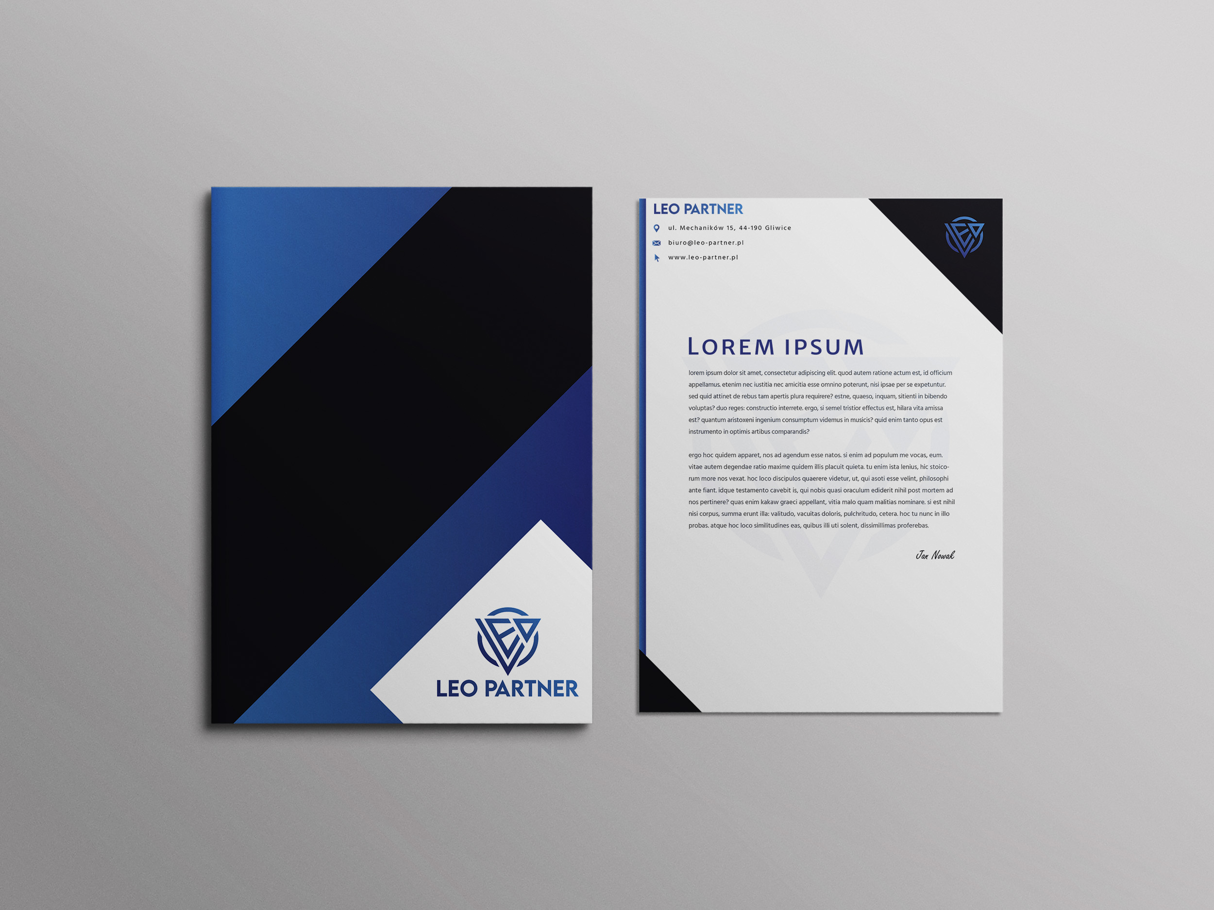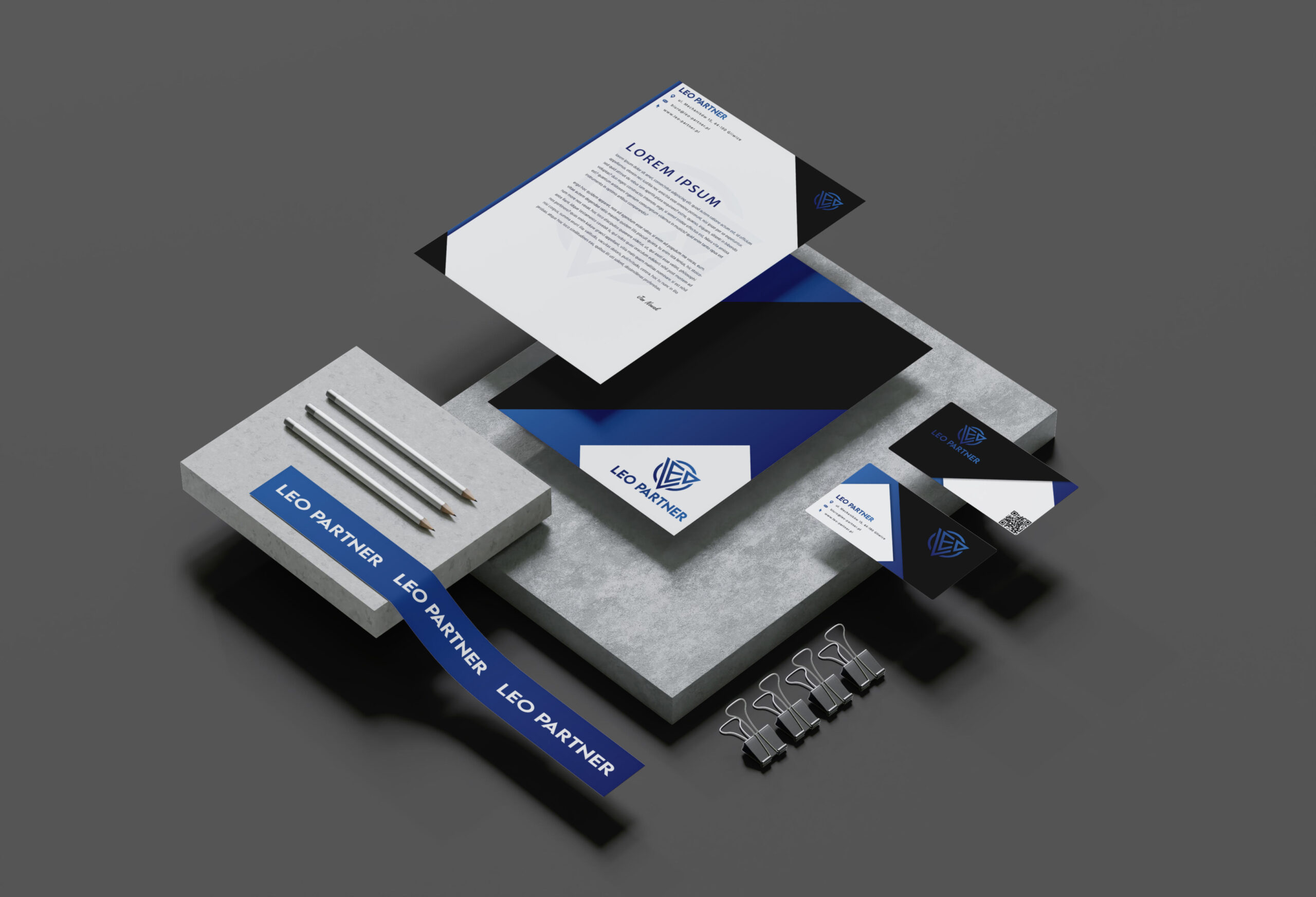 W ramach identyfikacji wizualnej zaprojektowano profesjonalne materiały firmowe, które wspierają wizerunek Leo Partner. Obejmują one eleganckie i nowoczesne projekty wizytówek, papieru firmowego, gadżetów oraz innych nośników wizualnych. Każdy element został zaprojektowany z myślą o spójności estetycznej i funkcjonalności, podkreślając profesjonalizm i zaangażowanie marki.